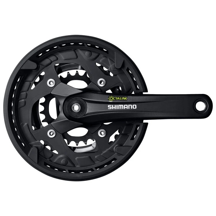 - System mocowania Octalink: Oś o ośmiu wypustach zwiększa powierzchnię styku między korbą a suportem, co usztywnia całą konstrukcję i podnosi jej odporność na przeciążenia.