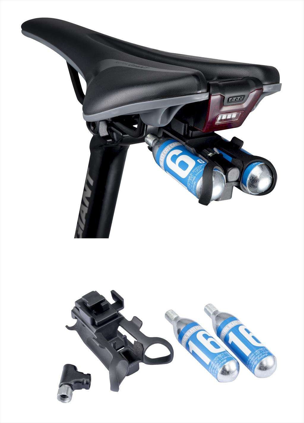 Zestaw zawiera: dwa naboje 16 g CO2 i inflator CO2 do opon