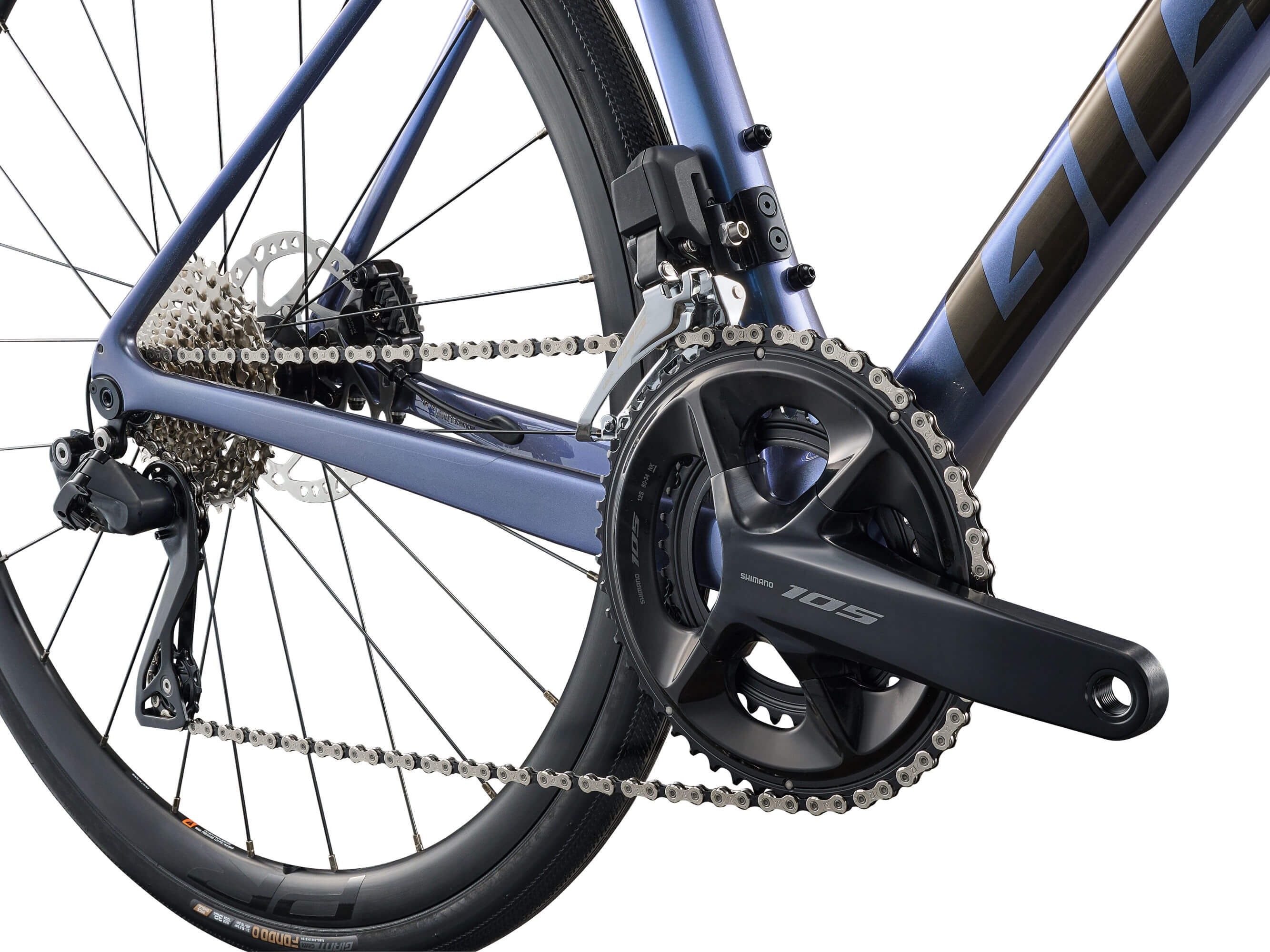 Zastosowanie elektronicznej grupy Shimano 105 Di2 przenosi jazdę na nowy poziom. Błyskawiczna i niezwykle precyzyjna zmiana przełożeń za jednym dotknięciem sprawia, że możesz w pełni skupić się na trasie, niezależnie od stopnia nachylenia czy zmęczenia.