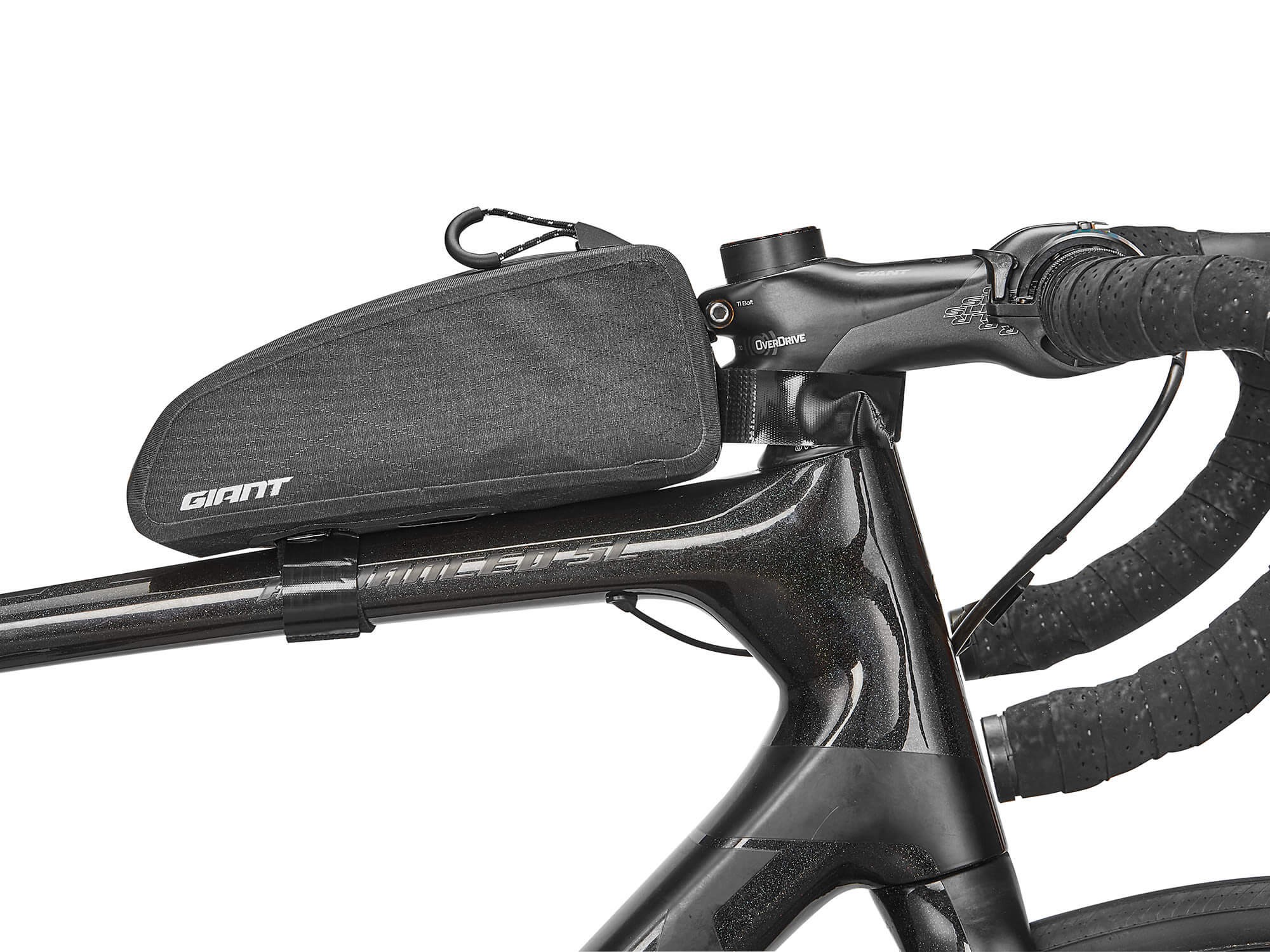 Wodoodporna torba na górną rurę H2Pro umożliwia łatwy dostęp jedną ręką do często używanych przedmiotów, takich jak krem do opalania, jedzenie czy telefon.